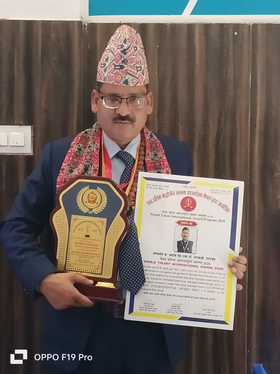 दिनांक 22 फरवरी 2025 को डॉ. जगदीश सिंह रावत सहायक अध्यापक पी.एम. श्री राजकीय आदर्श प्राथमिक विद्यालय बड़कोट,नौगांव, उत्तरकाशी उत्तराखंड,भारत को नेपाल की पवित्र भूमि और भगवान बुद्ध की जन्म स्थली लुंबिनी प्रांत के नेपाल गंज में विश्व प्रतिभा अंतर्राष्ट्रीय सम्मान (वर्ल्ड टेलेंट इंटरनेशनल अवार्ड) से सम्मानित किया गया। इस कार्यक्रम के मुख्य अतिथि माननीय श्री भंडारी लाल आहिर नि वर्तमान कृषि मंत्री, विशिष्ट अतिथि श्रीमान बादशाह कुर्मी नि वर्तमान वन एवम पर्यावरण मंत्री लुंबिनी सरकार,विशिष्ट अतिथि श्रीमान जश भाई पटेल गुजरात (भारत के वर्तमान प्रधानमंत्री माननीय श्री नरेंद्र दामोदर दास मोदी के सलाहकार) और कार्यक्रम के अध्यक्ष श्रीमान आनंद गिरी मयालु जी नेपाल और भारत के समस्त राज्यों से आए हुए सम्मानित समस्त सदस्य गण इस कार्य क्रम में सम्मानित हुए। डॉ. जगदीश सिंह रावत को विश्व स्तर का यह सम्मान उनकी काव्य गत रचनात्मक कार्य, शिक्षा के क्षेत्र में उल्लेखनीय कार्य और समाज में जागरूकता लाने के लिए दिया गया है। डॉ. जगदीश सिंह रावत पी.एम. श्री राजकीय आदर्श प्राथमिक विद्यालय बड़कोट, नौगांव, उत्तरकाशी, उत्तराखंड में सहायक अध्यापक के पद पर कार्यरत हैं। यमुनोत्री विधायक श्री संजय डोभाल जी,पुरोला विद्यायक श्री दुर्गेश्वर लाल जी, अध्यक्ष नगर पालिका परिषद बड़कोट श्री विनोद डोभाल जी, पी.एम. श्री राजकीय आदर्श प्राथमिक विद्यालय बड़कोट की प्रधानाध्यापिका श्रीमती सरिता जी, विद्यालय प्रबंधन समिति की अध्यक्षा श्रीमती कुन्ती देवी, श्रीमती प्रवीणा पुरी, सिंह ललिता राम, सविता भंडारी, उत्तरकाशी जिले के उत्तराखंड प्राथमिक शिक्षक संघ के प्रदेश कोषाध्यक्ष श्री विनोद रतूड़ी, पूर्व प्रदेश कोषाध्यक्ष श्री जनक सिंह राणा जी ,जिला अध्यक्ष श्रीमान उदय सिंह विष्ट, जिला मंत्री श्री जयदेव सिंह राणा, नौगांव विकास खण्ड के ब्लॉक अध्यक्ष श्रीमान विजेंद्र विश्व कर्मा, ब्लॉक मंत्री श्री प्रताप सिंह राणा, कोषाध्यक्ष श्रीमती पुष्पा रावत रमोला आदि उत्तर काशी जिले के समस्त श्रेष्ठ, वरिष्ठ एवम कनिष्ठ सम्मानित शिक्षकों साथियों ने डॉ. रावत को बहुत – बधाई और हार्दिक शुभकामनाएं दी हैं।